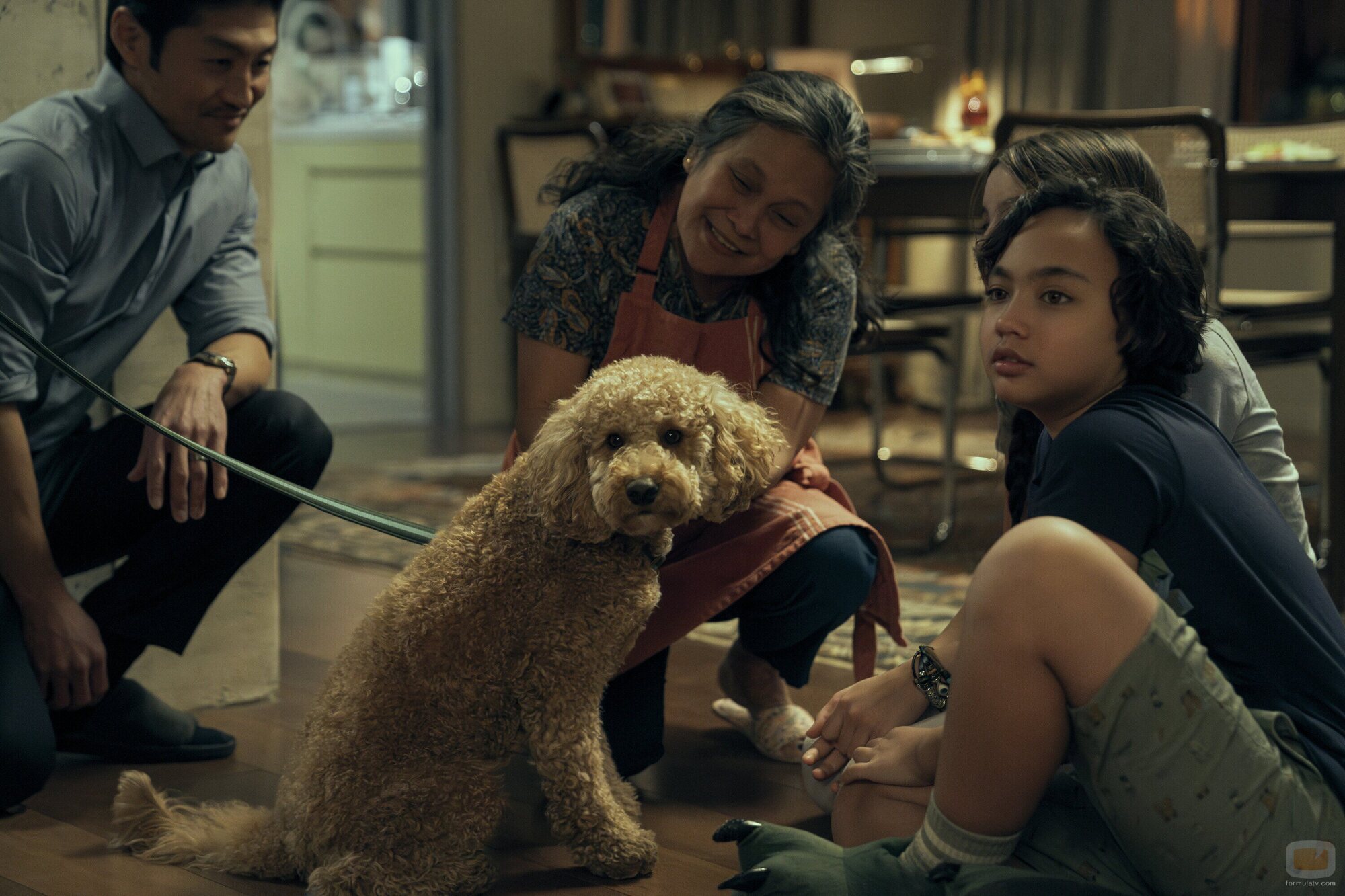 Brian Tee, Ruby Ruiz y Bodhi del Rosario aparecen en una imagen del episodio 'Mid-Levels' de 'The Expatriates'.