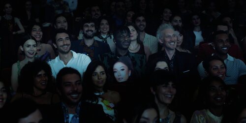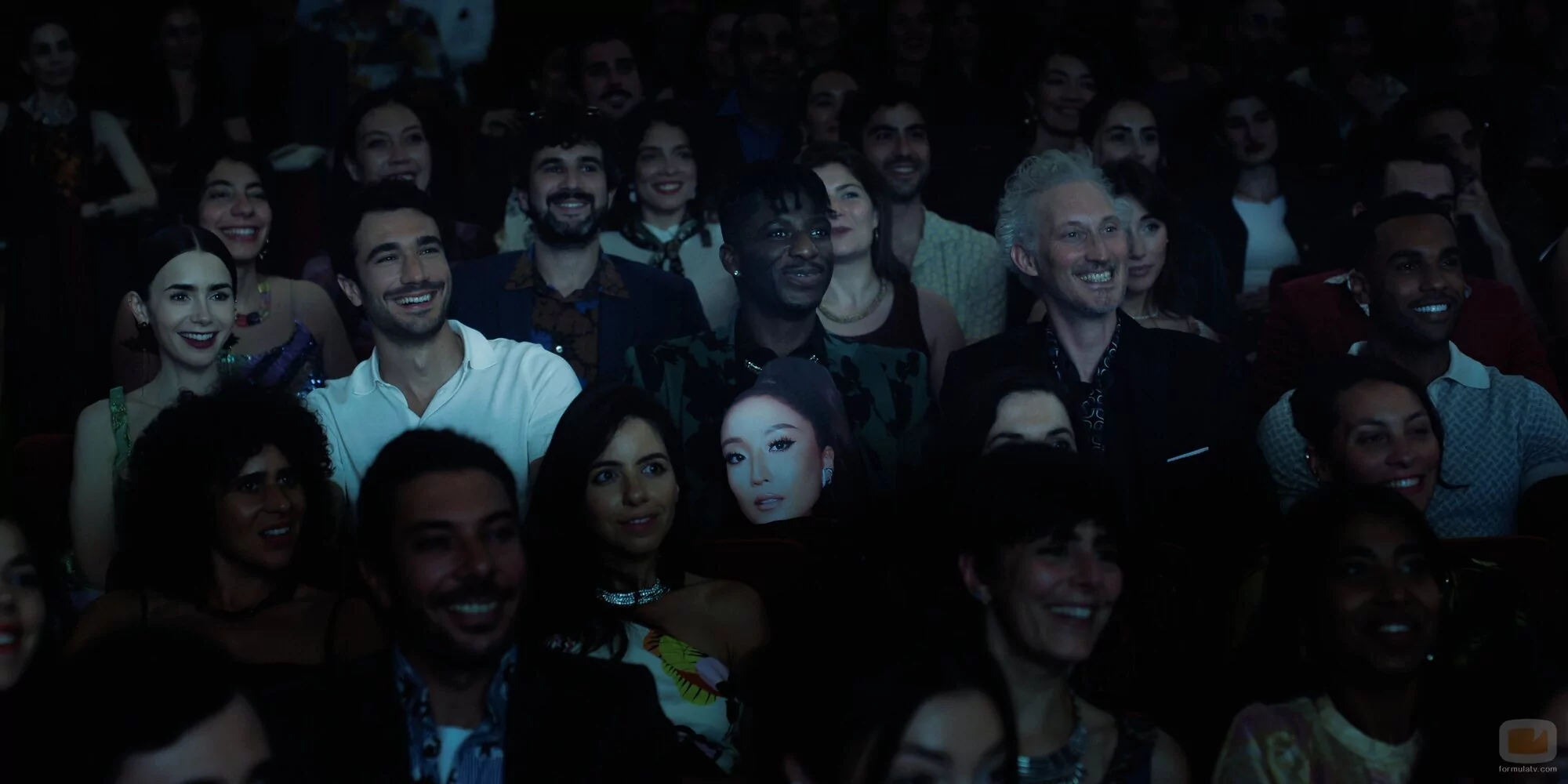 Lucien Laviscount, Eugenio Franceschini, Lily Collins, Bruno Gouery y Samuel Arnold aparecen en una escena promocional del capítulo 5x03 de 'Emily in Paris'.