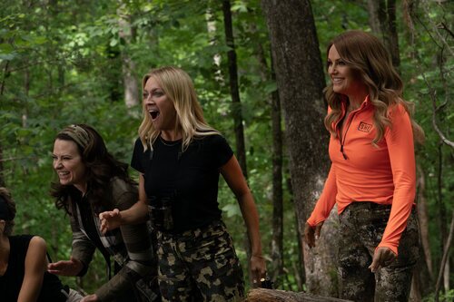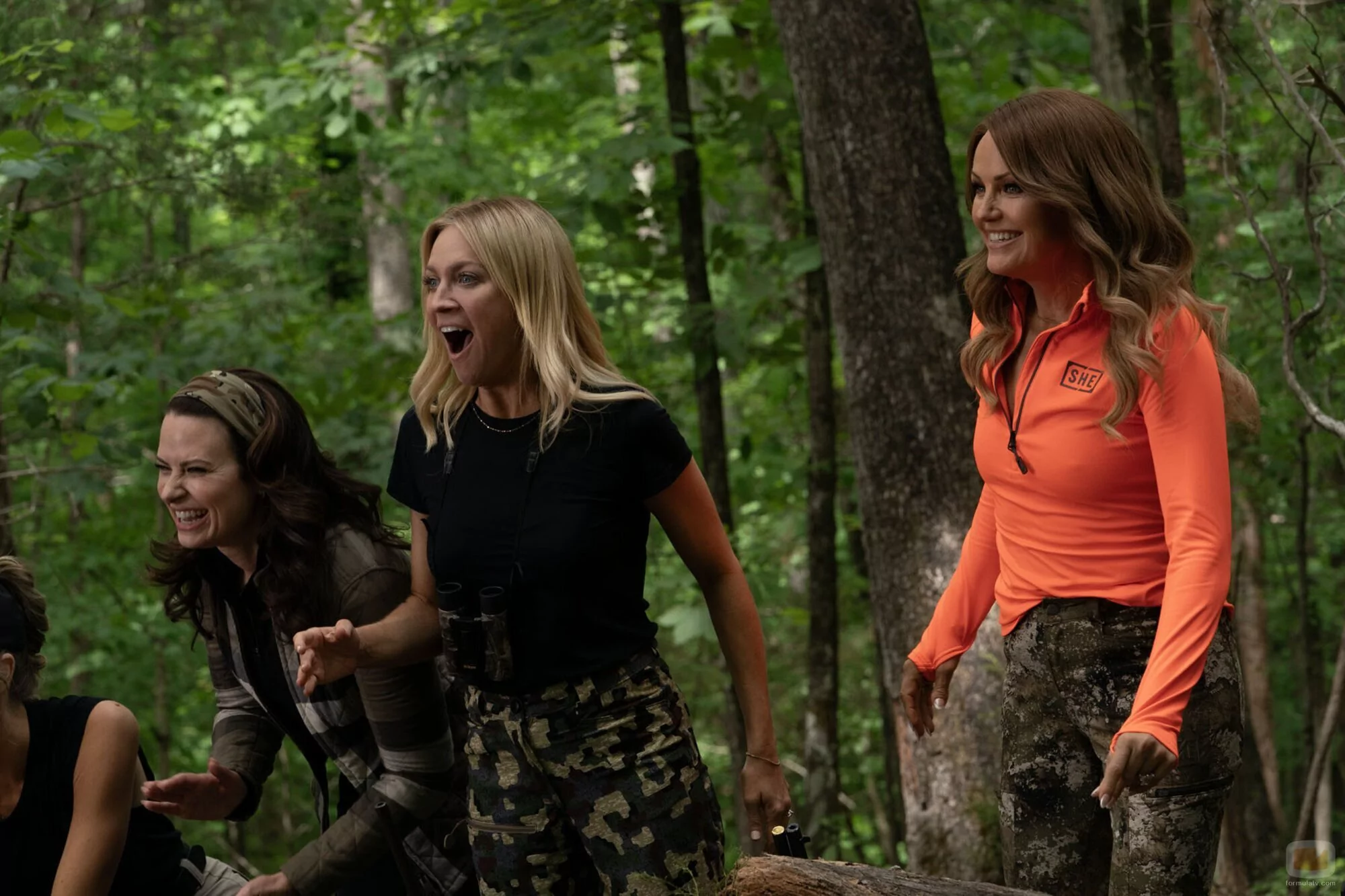 Malin Akerman, Brittany Snow y Katie Lowes aparecen en una escena del episodio 'Todo se revela al amanecer' de 'The Hunting Wives'.