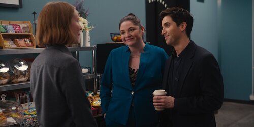Hannah Einbinder, Megan Stalter y Paul W. Downs aparecen en una escena promocional del capítulo 'Amo Los Ángeles' de 'Hacks'.