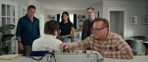 Monica Barbaro, Arnold Schwarzenegger y Scott Thompson aparecen en una imagen del episodio 'Astronáufrago' de la serie 'Fubar'.