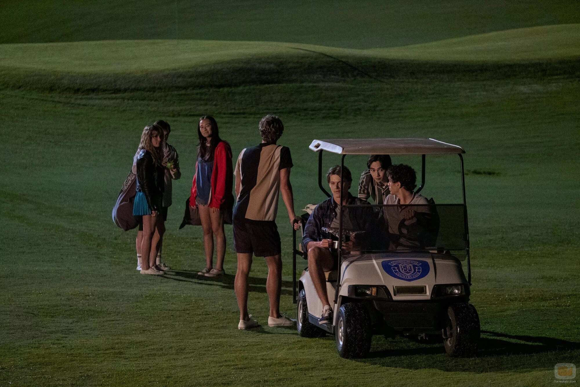 Lola Tung, Sean Kaufman, David Iacono, Rain Spencer y Christopher Briney aparecen en una escena promocional del capítulo 'Amor tonto' de 'El verano en que me enamoré'.