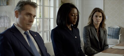 Rory Kinnear, Keri Russell y Nana Mensah aparecen en una foto del capítulo 'Amagansett' de 'La diplomática', la serie de televisión de Netflix.