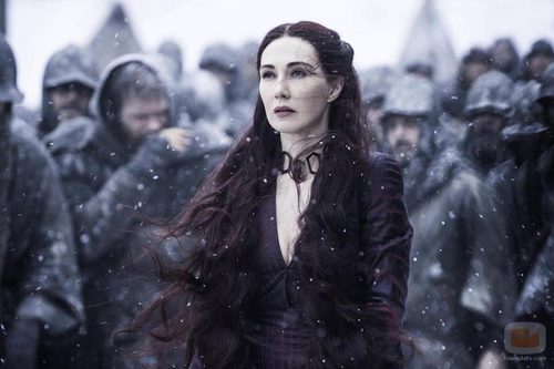 Melisandre, interpretada por Carice van Houten, se enfrenta al frío en esta imagen de la quinta temporada de 'Juego de Tronos'.
