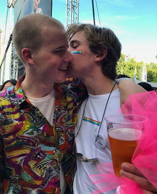 Carl Martin Eggesbø y Tarjei Sandvik Moe, actores de 'Skam', en el Oslo Pride