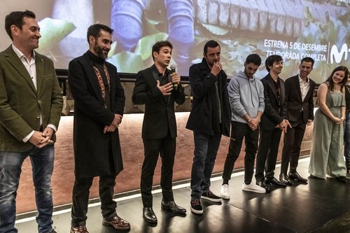 Carlos Cuevas junto al resto del equipo presentando 'Merlí: Sapere Aude' en la premiere de Barcelona