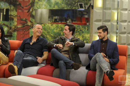 Los concursantes, Carlos Lozano, Francisco Nicolás y Alejandro Nieto aparecen sonrientes en el salón de la casa de 'Gran Hermano VIP', en la gala 11.