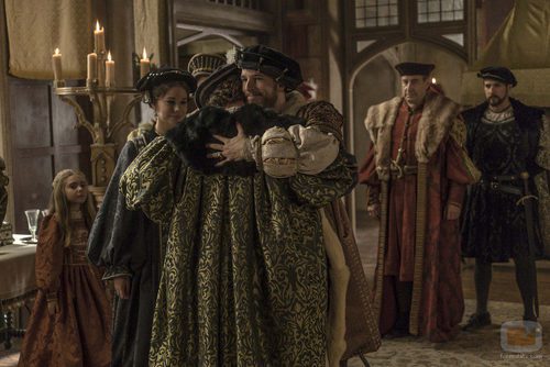 (01x11) Carlos V (Álvaro Cervantes) abraza tiernamente a sus dos hermanos: María de Austria (Laia Costa) y Fernando de Austria (Eric Balbás) en su reencuentro