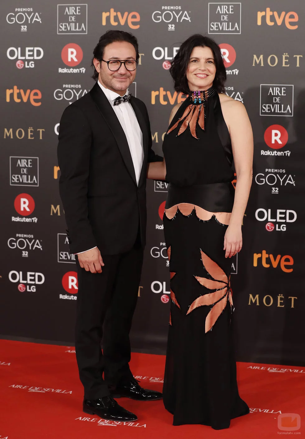 El protagonista de la serie 'Ella es tu padre' y la reconocida actriz de películas como "Quatretondeta" o "Brava" y series como 'Carlos, Rey Emperador' o 'Los nuestros' posan la alfombra roja de los Goya 2018.