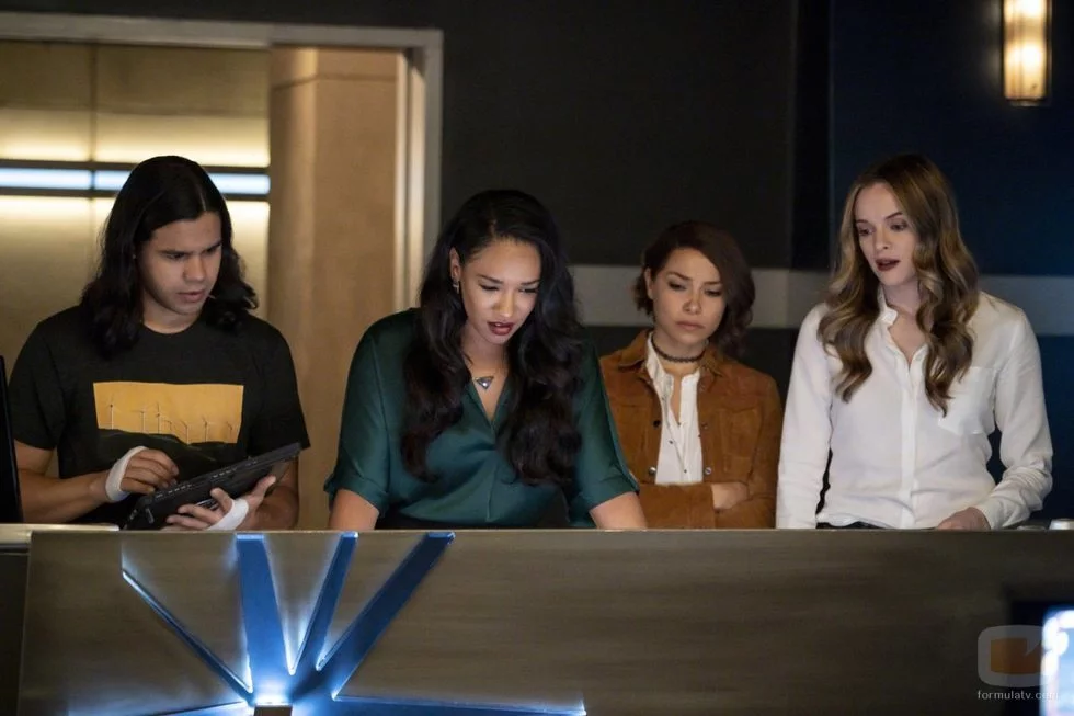 Carlos Valdes interpreta a Cisco Ramon, Candice Patton interpreta a Iris West, Jessica Parker Kennedy interpreta a Nora West-Allen y Danielle Panabaker interpreta a Caitlin Snow en la quinta temporada de 'The Flash', de The CW.