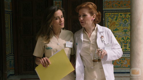 Dolores (Mari Paz Sayago) y Carmen (María León) cotillean por los pasillos del hospital en el noveno capítulo de 'Allí abajo'.