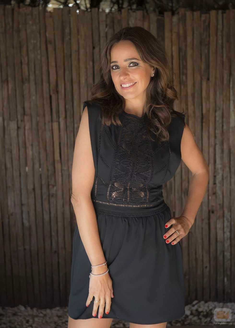 Carmen Alcayde, la periodista valenciana, posando para los fotógrafos de 'Ven a cenar conmigo: Summer Edition'. Ella es una de los cinco famosos que se pondrán manos a la masa para competir por los 3.000 euros de premio.
