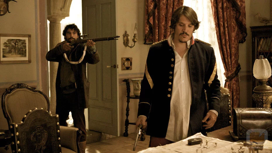 César amenaza a Ugarte con dispararle después de arrasar el pueblo en 'Tierra quemada'.