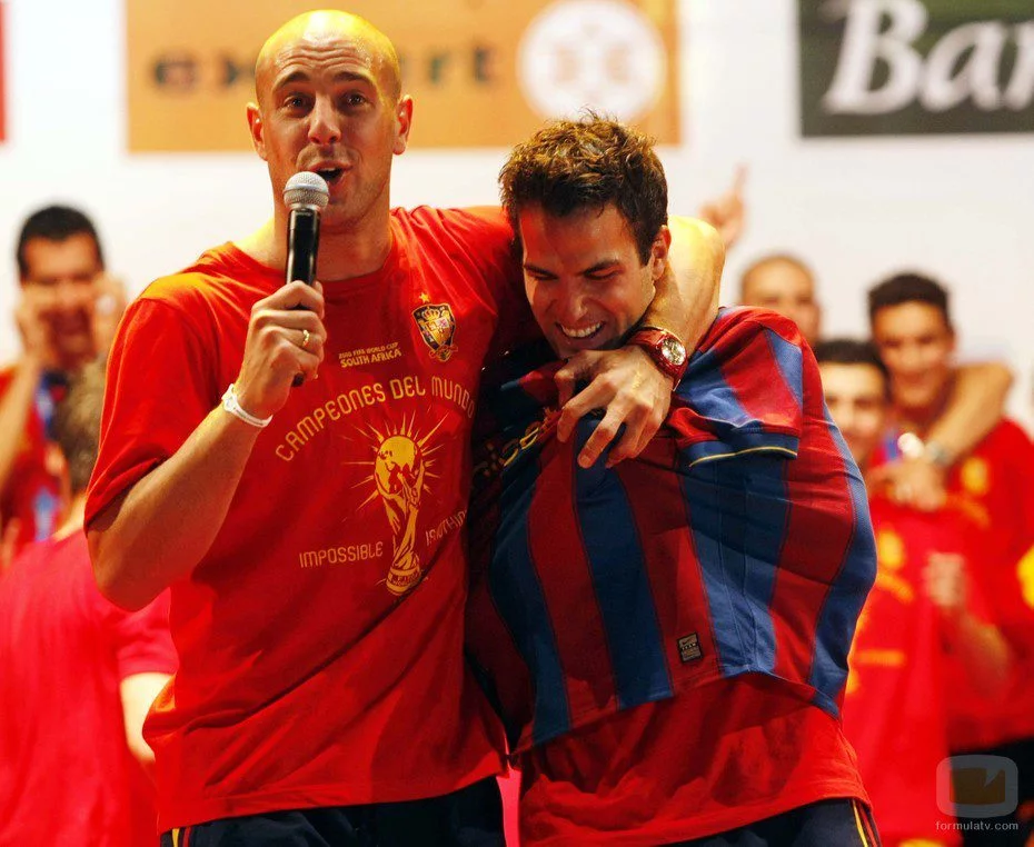 Cesc, con la camiseta del Barça durante la celebración del Mundial