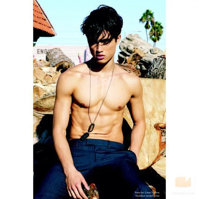 El actor Charles Melton, conocido por su papel en 'American Horror Story' y por su reciente incorporación a 'Riverdale', posa mirando a cámara, sentado y sin camiseta.