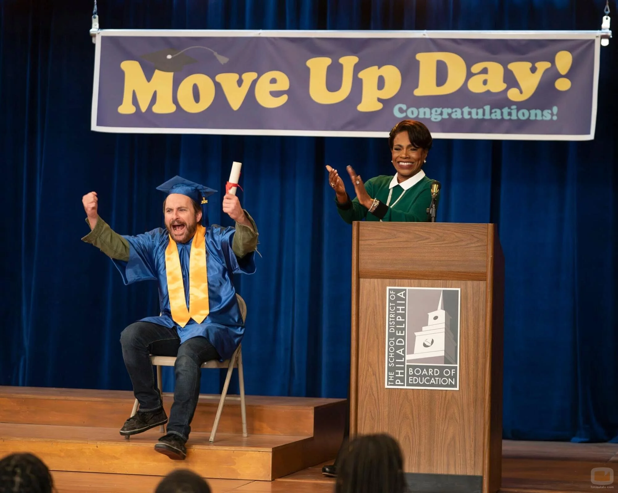 Sheryl Lee Ralph y Charlie Day aparecen en una imagen promocional del capítulo 'Voluntarios' de 'Colegio Abbott'.