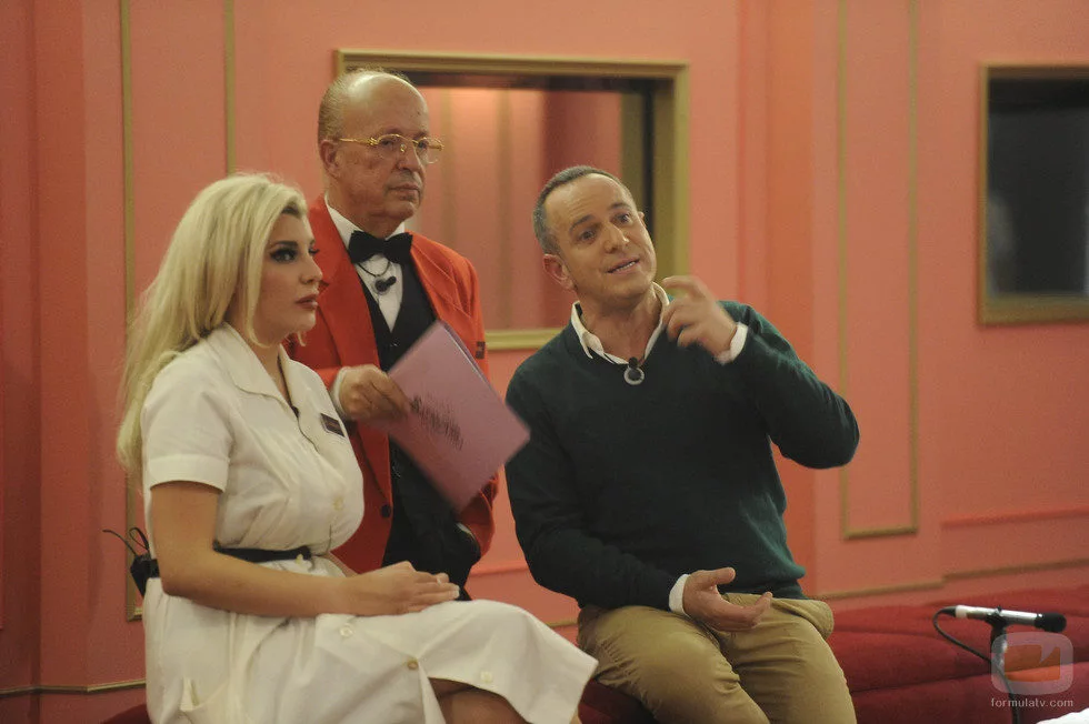 Los concursantes de 'Gran Hermano Vip 2016' Charlotte Caniggia y Rappel, junto a uno de los invitados a la casa de Guadalix, Víctor Sandoval.