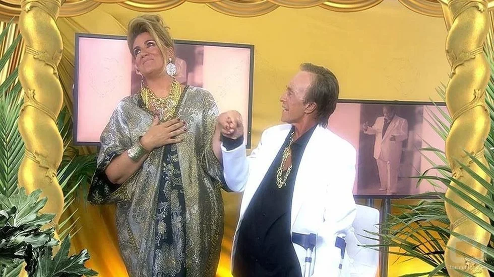 La periodista Chelo García-Cortés caracterizada como el empresario Jesús Gil en el especial de 'Sálvame Marbella y tal y tal'.
