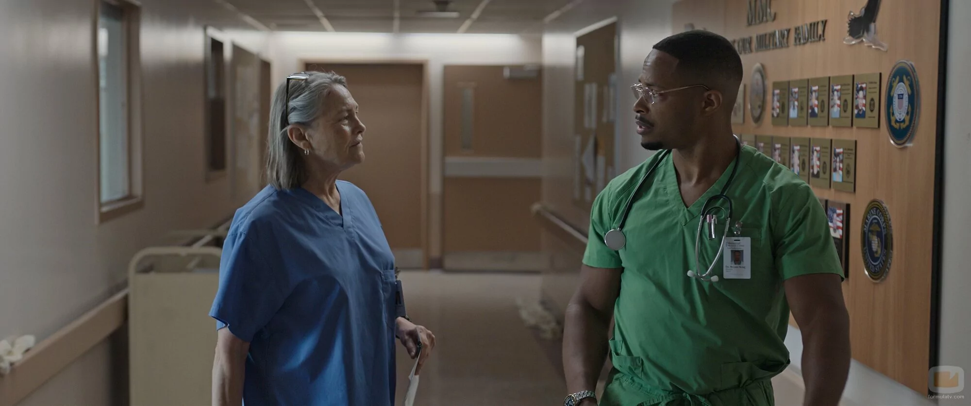 Cornelius Smith Jr. y Cherry Jones aparecen en una foto del capítulo 1x02 de la serie 'Después del huracán'.