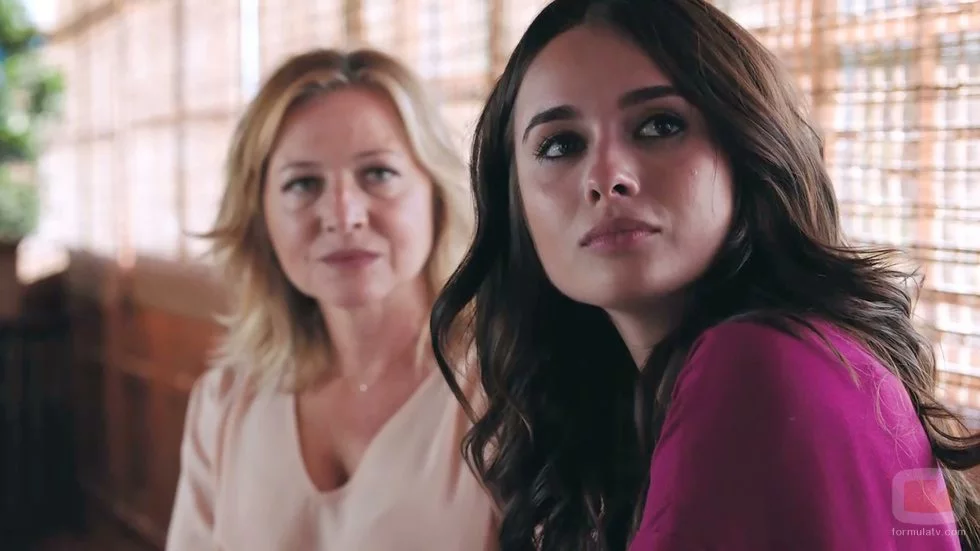 Chon Moliner (Giulia Charm) y Nina Bandeira (Pilar Castro) están sentadas juntas en el 2x01 de 'Vivir sin permiso'. Miran a Nemo Bandeira, que llega a verlas en esa escena del episodio.