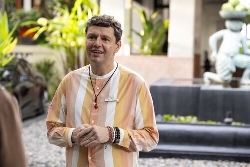 El actor Christian Friedel (Fabian) en una escena del episodio 'Amor Fati' de la serie 'The White Lotus' con fecha de estreno el Domingo, 06 de Abril de 2025.