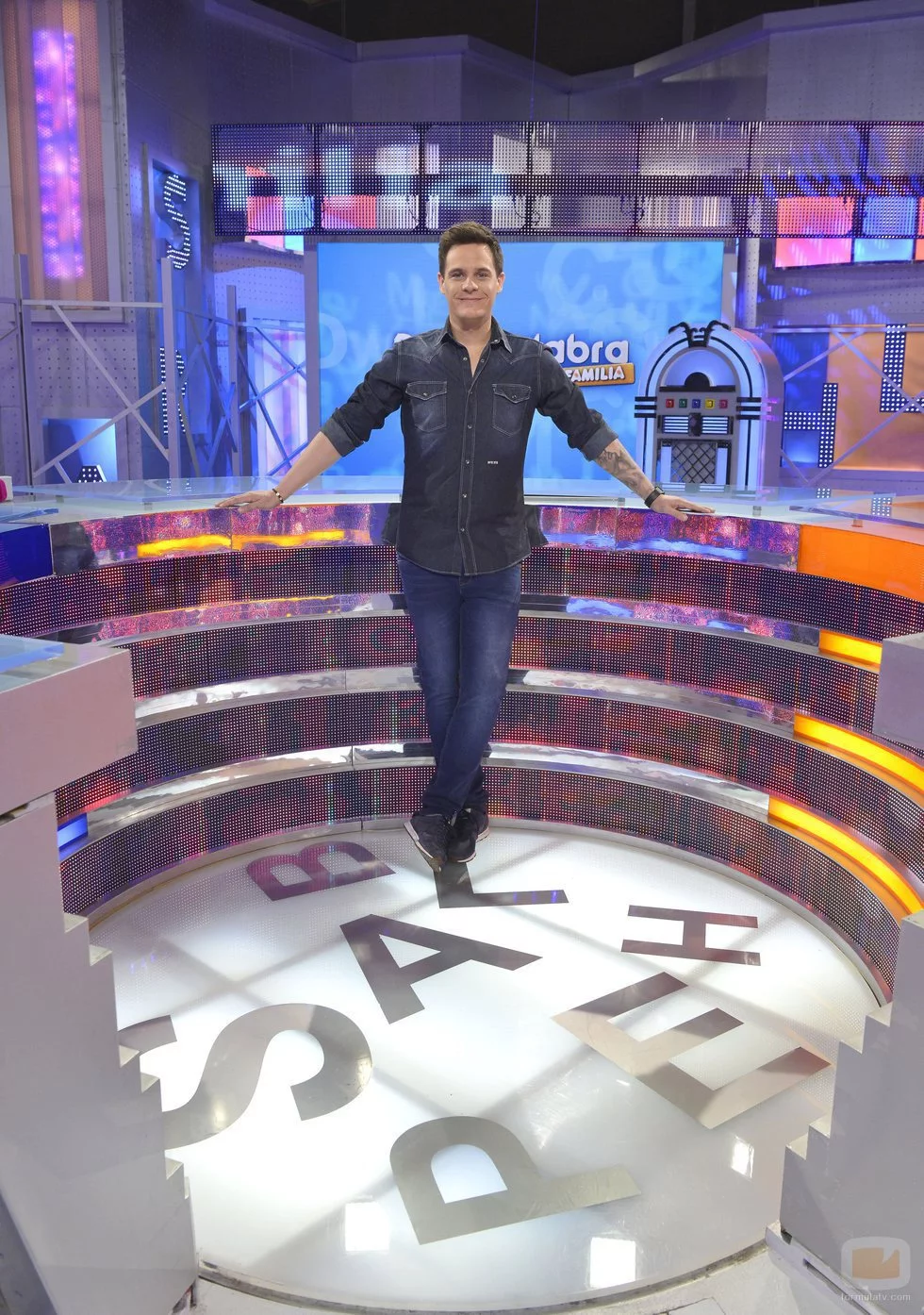 Christian Gálvez posa en el plató de 'Pasapalabra en familia'