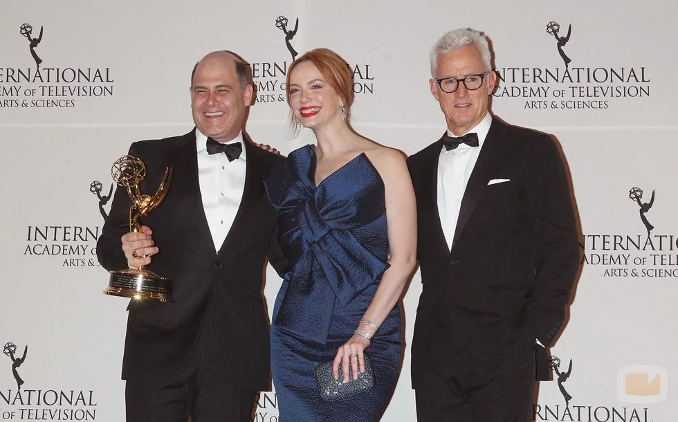 Christina Hendricks, John Slattery y Matthew Weiner en los Emmy Internacional 2014