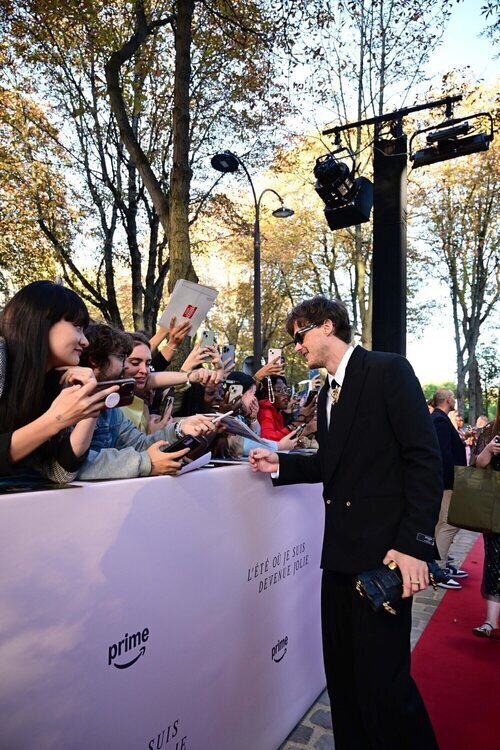 Christopher Briney, saludando a la prensa en Première del final de 'El verano que me enamoré' en París
