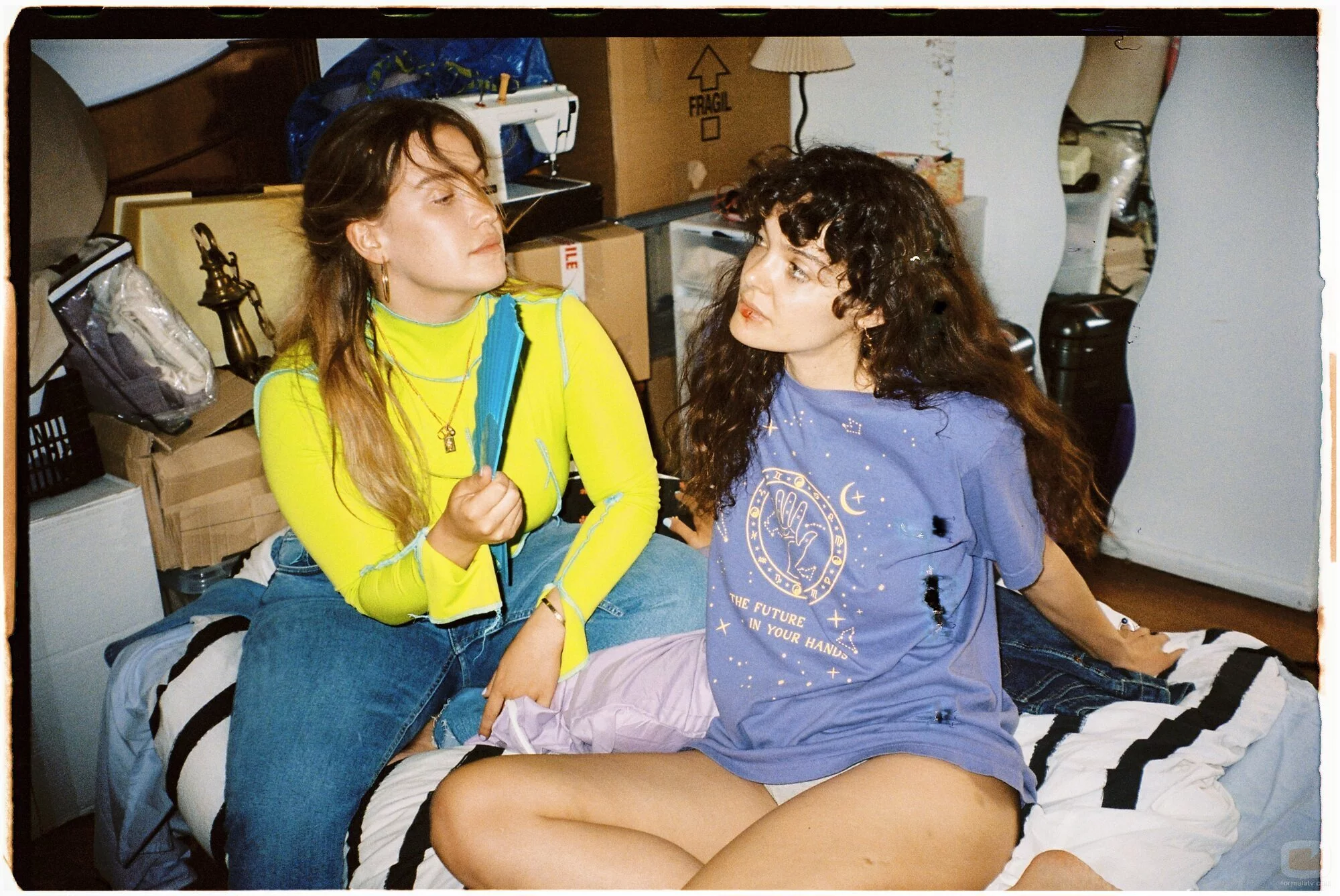 Bego (Clara Sans) y María (Ana Rujas), sentadas en una cama durante una secuencia de la serie de Atresplayer Premium.