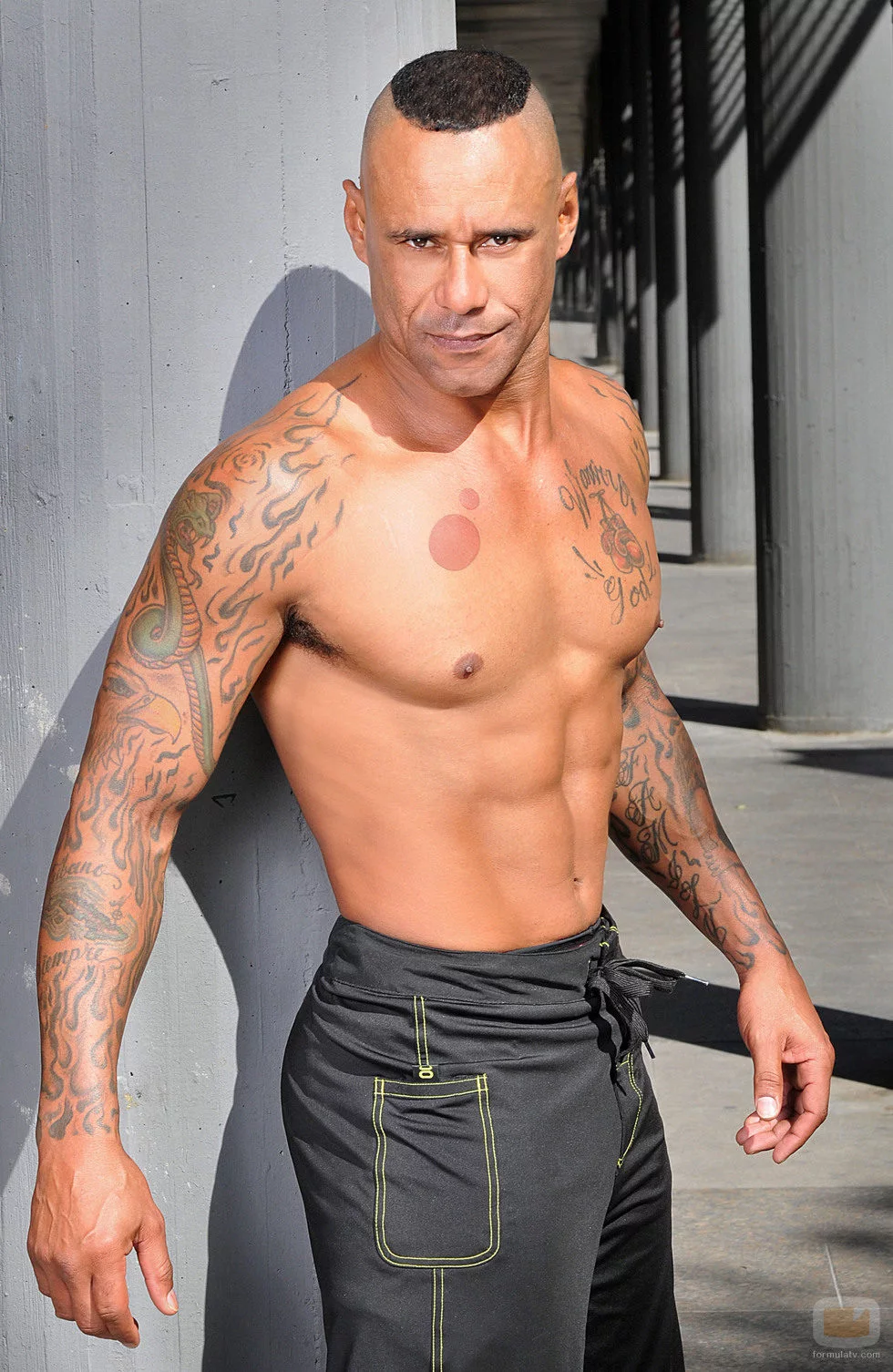 El presentador de 'El método Osmin' posa con el torso desnudo y con el logotipo de Cuatro en el pecho.