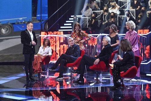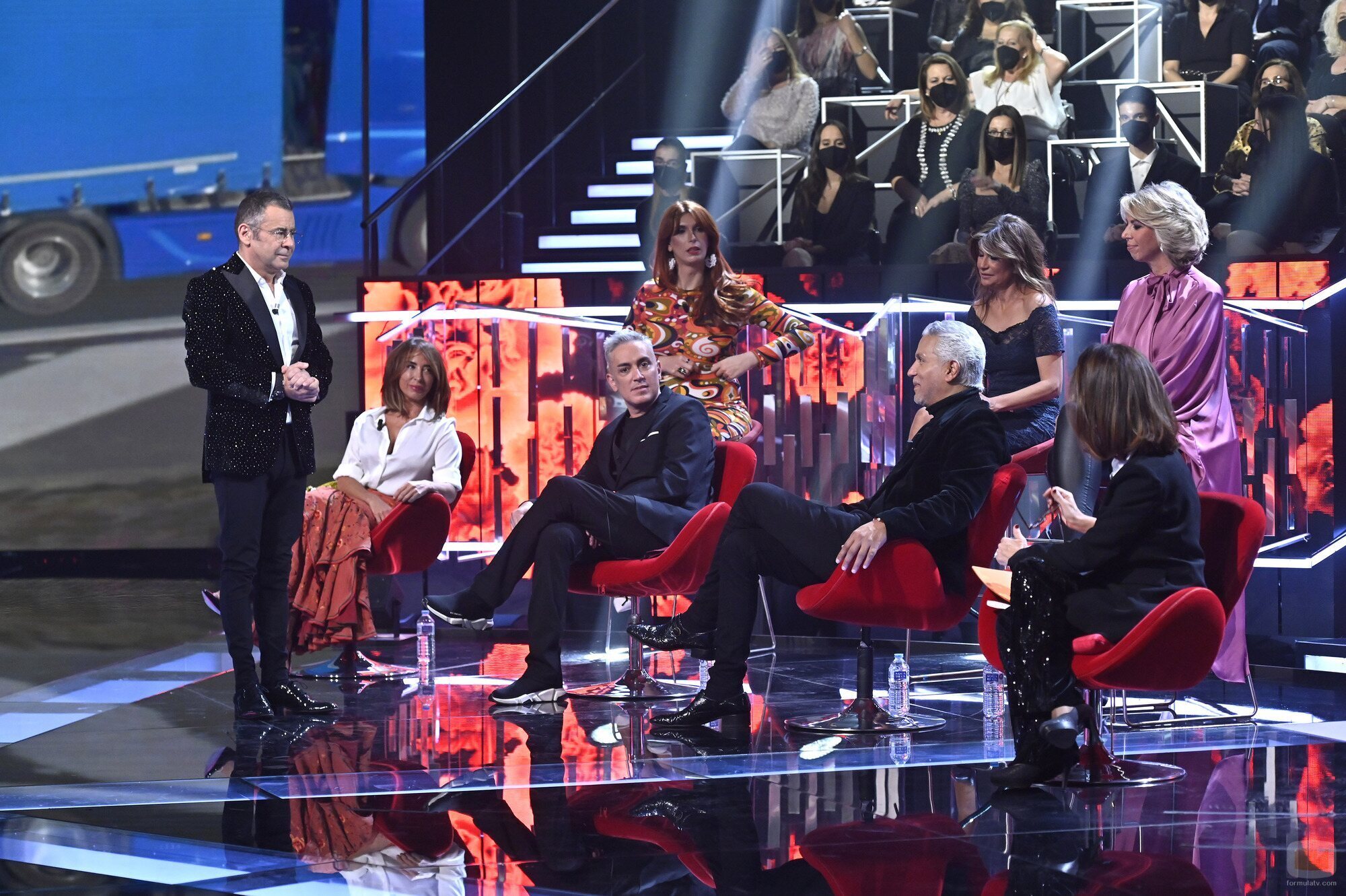 Jorge Javier Vázquez, María Patiño, Kiko Hernández, Valeria Vegas, Carlos Arturo Zapata, Gema López, Marina Bernal y Paloma García Pelayo, desde el plató de 'El último viaje de Rocío'.