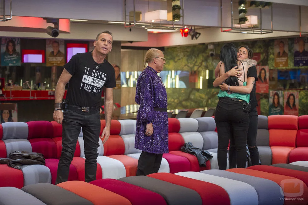 Los concusrantes aparecen en el salón de la casa, mientras Laura Matamoros abraza a Laura Campos la gala 14 de 'Gran Hermano VIP', tras su expulsión.