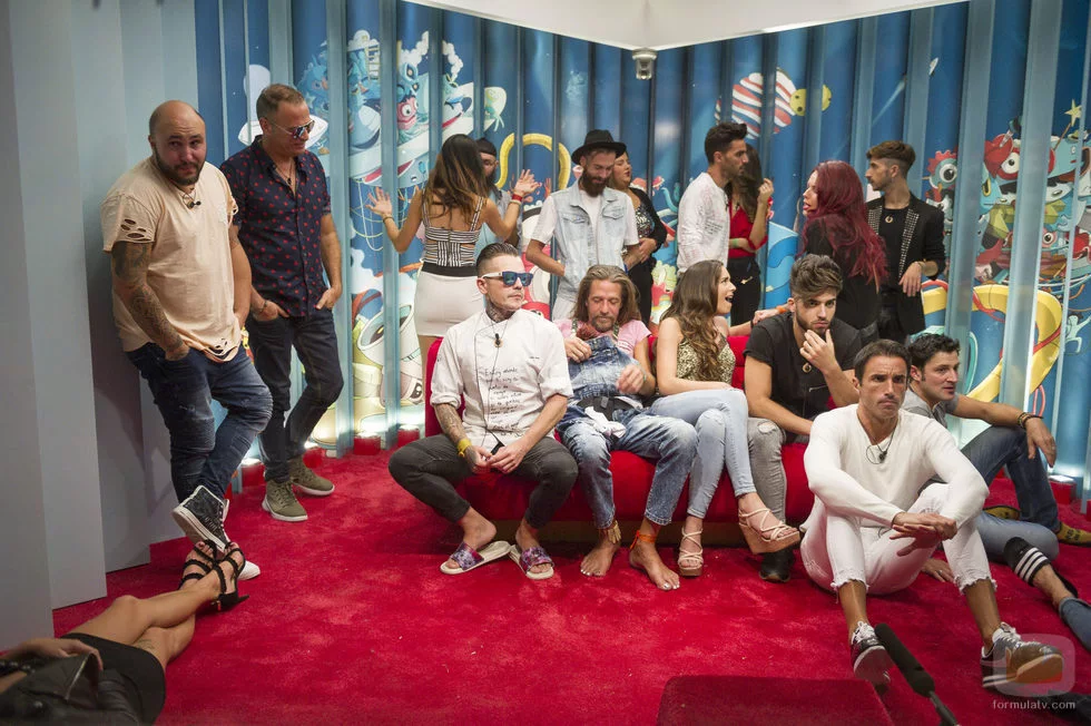 Los concursantes durante la 7ª gala de 'GH Revolution' en el confesionario junto a Kiko Rivera y Carlos Lozano.