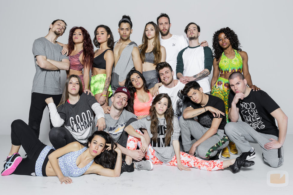 Todos los concursantes posan en una sesión de fotos antes de entrar en la academia de baile de Antena 3, 'Top Dance'.