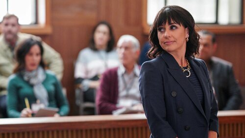 La actriz Constance Zimmer (Kathleen Gale) en una foto del episodio 'Declaraciones iniciales' de la serie 'Good Trouble'.