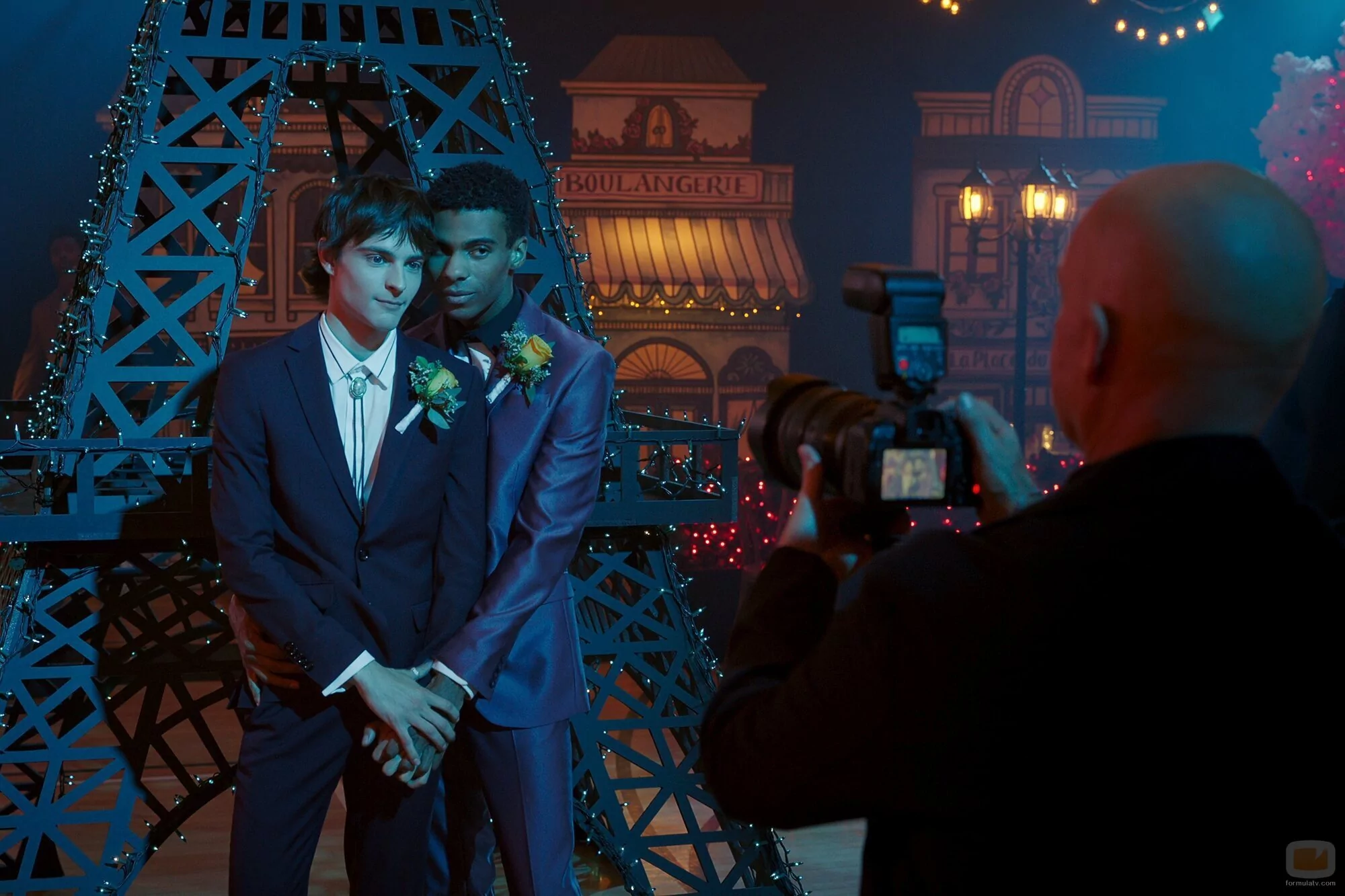 Corey Fogelmanis y Jaylan Evans aparecen en una foto del capítulo 2x05 de 'My Life with the Walter Boys', la serie de televisión de Netflix.