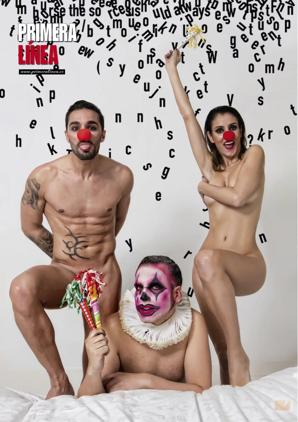 Los exconcursantes de 'GH Revolution' posan desnudos con accesorios de payaso junto a Torito para la revista Primera Línea.
