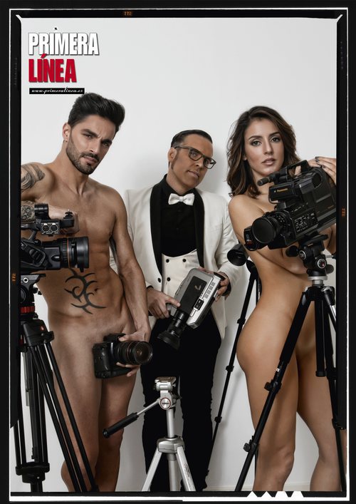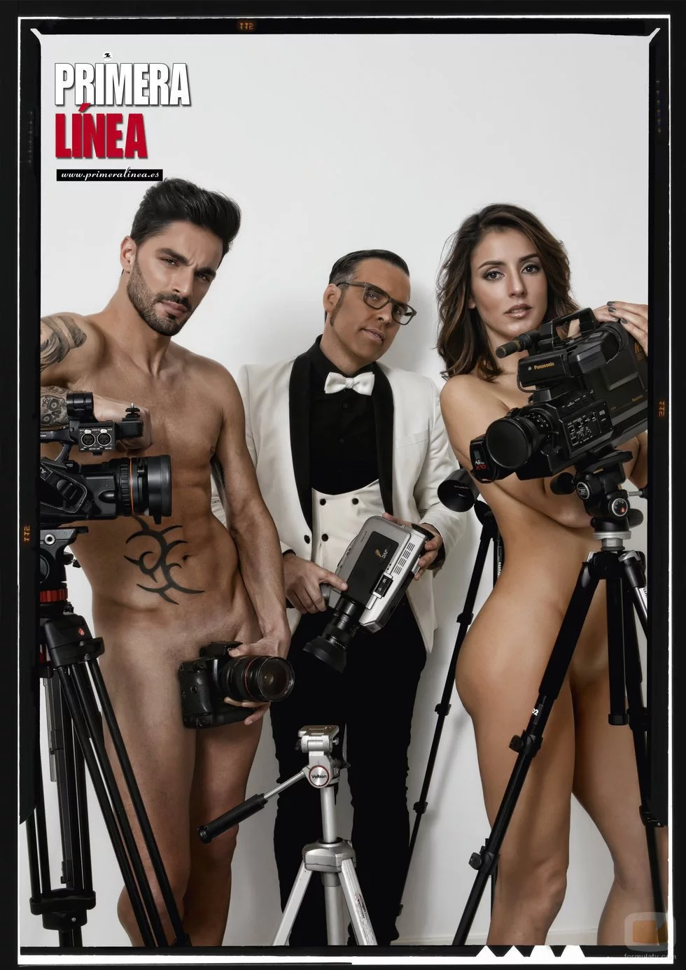 Los exconcursantes del reality de Telecinco 'GH Revolution' posan desnudos junta varios equipos audiovisuales acompañados de Torito.