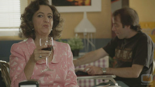 Malena Gutiérrez es Cuca, la rica del barrio, en una imagen del segundo episodio de la serie de Telecinco 'Aquí Paz y después Gloria'.