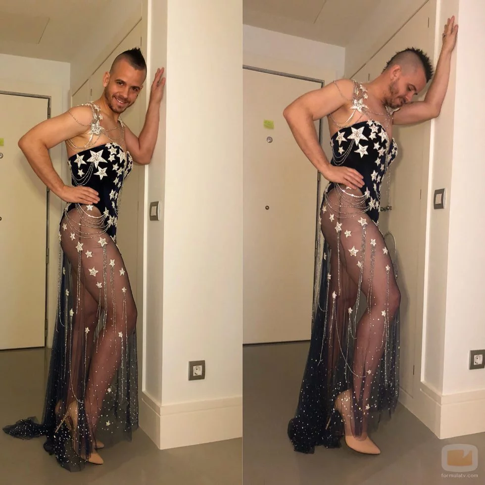 El chef, pareja actual de la presentadora Cristina Pedroche, se ha enfundado de nuevo en el vestido de las campanadas pasadas de su mujer.