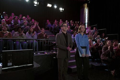 Hannah Einbinder y Dan Bucatinsky aparecen en una escena promocional del capítulo 4x08 de 'Hacks' con fecha de estreno el Jueves, 15 de Mayo de 2025.
