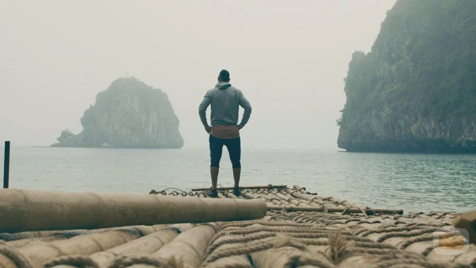Uno de los concursantes de la segunda temporada de 'El Puente' observa la construcción de la plataforma que les llevará hasta el tesoro.