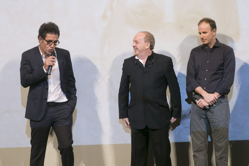 El creador de 'Estoy vivo', Daniel Écija, hablando en el escenario del FesTVal junto a Pau Donés y otros compañeros de equipo.