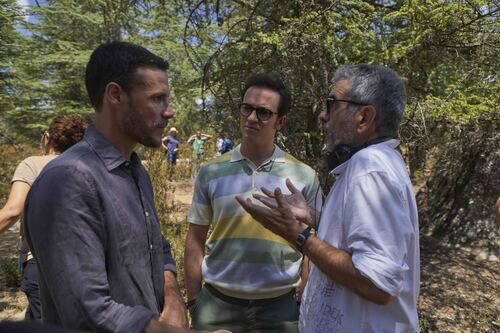 Daniel Grao (Hit), Alejandro Jato (Raúl) y Joaquín Oristrell, director de la serie, grabando la tercera temporada de 'HIT' en Canarias.