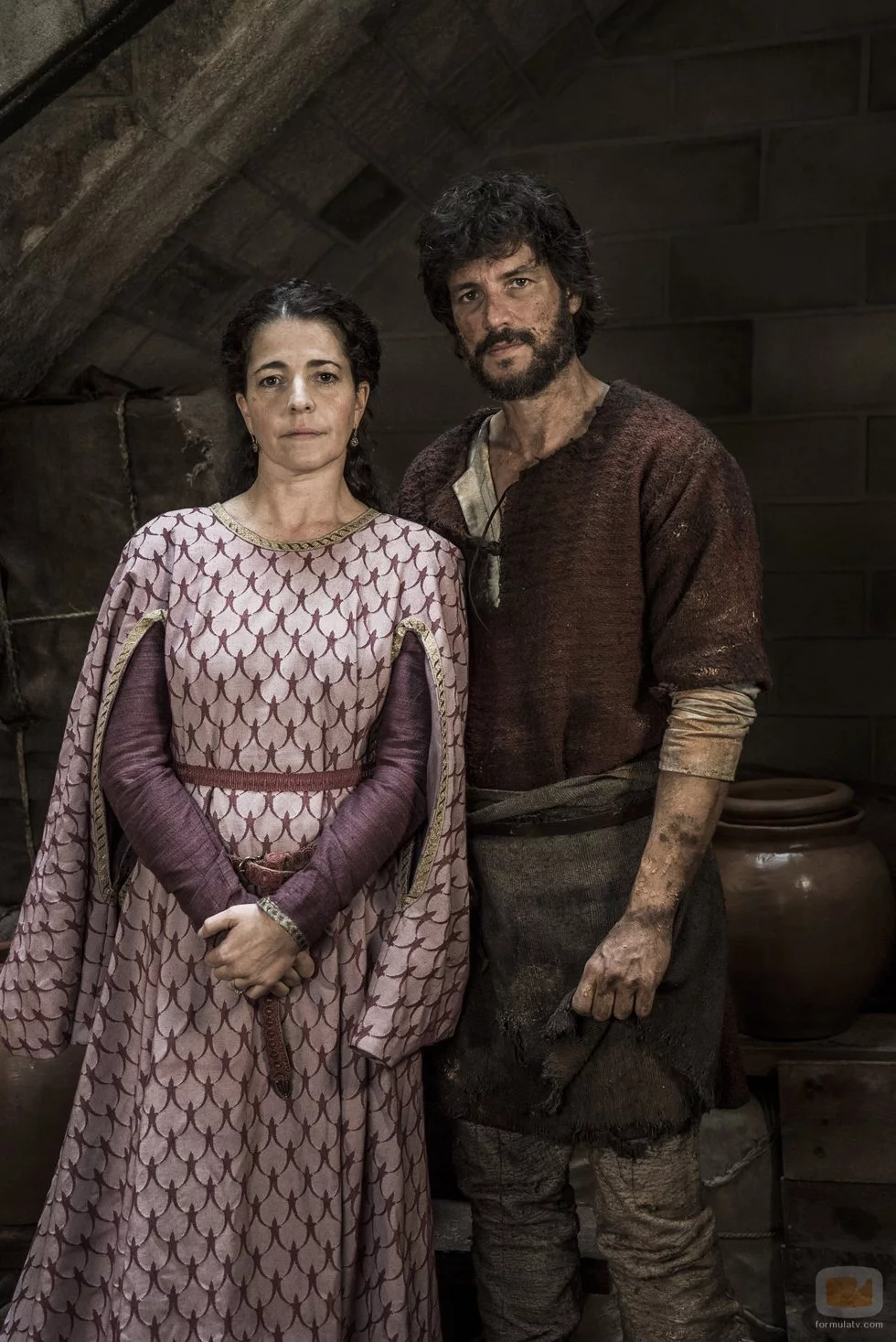 Posado de Daniel Grao y Nora Navas en 'La catedral del mar', caracterizas por sus personajes Bernat y Giamona. Él es el soltero de oro de la comarca. Ella es hermana de Bernat y esposa de Grau Puig