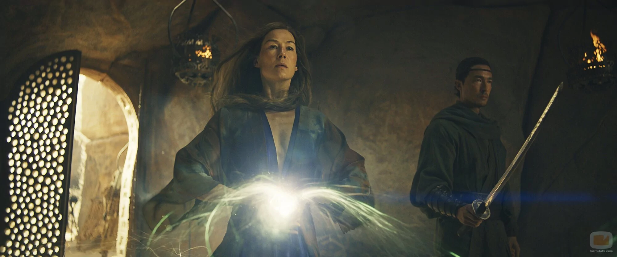 Rosamund Pike y Daniel Henney aparecen en una escena del capítulo 3x08 de la serie 'The Wheel of Time' con fecha de estreno el Jueves, 17 de Abril de 2025.