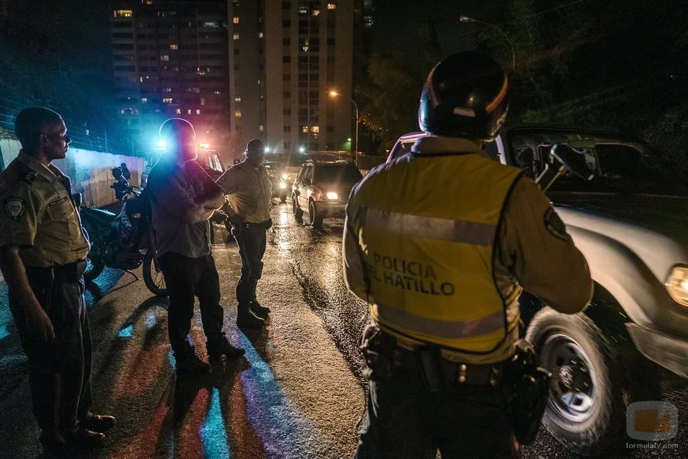 David Beriain durante la segunda temporada de 'Clandestino', delante de unos coches policiales en el primer episodio.