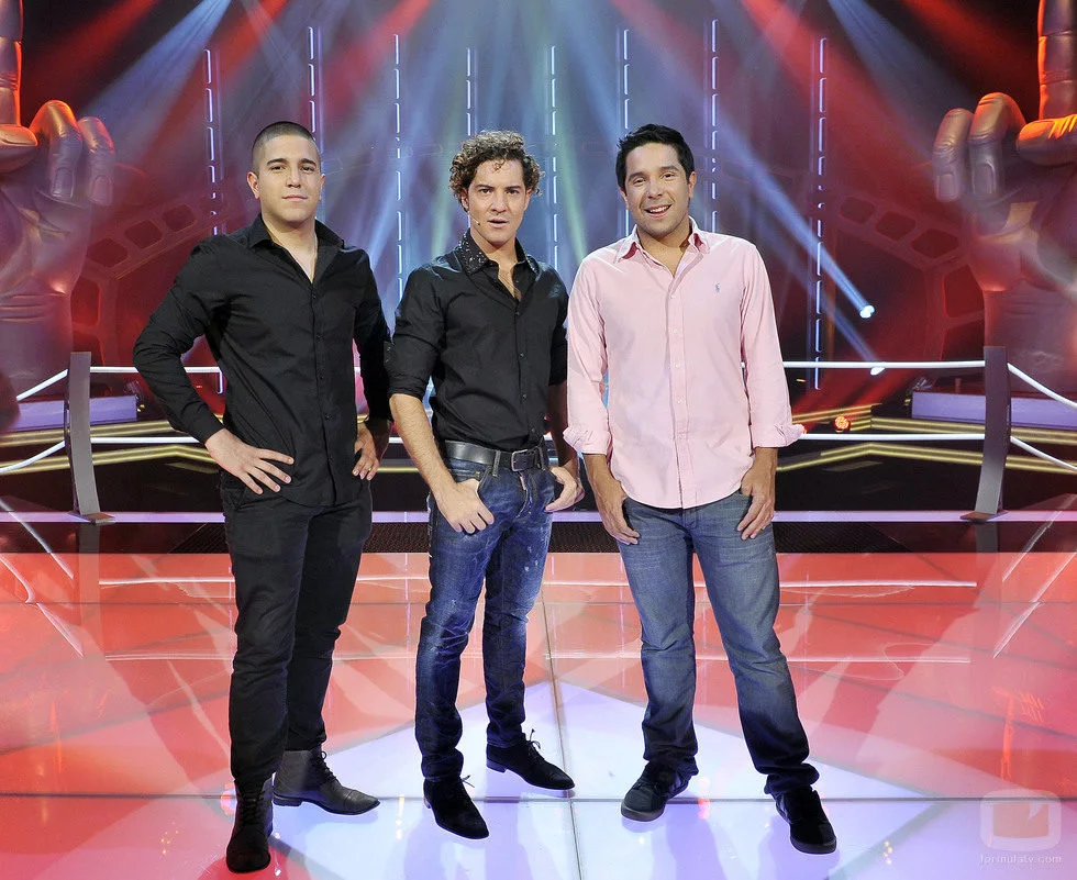 El coach de 'La voz' posa con sus asesores en el plató del programa.