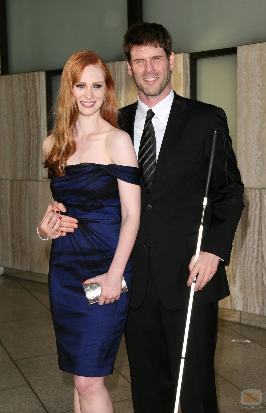 La actriz que da vida Jessica Hamby en 'True Blood', con su novio ciego a causa de una enfermedad, en la première de la tercera temporada en Los Ángeles.