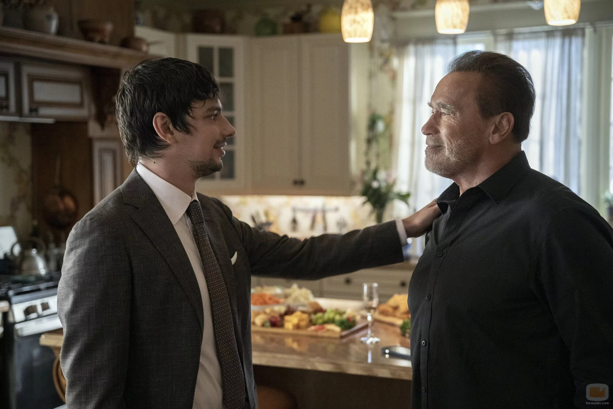 Devon Bostick y Arnold Schwarzenegger aparecen en una imagen promocional del episodio 'Punto y se acabó' de la serie 'FUBAR'.